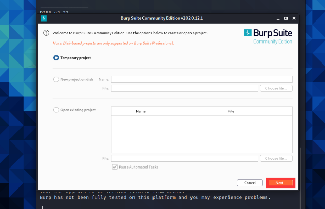 我们在kali中获取root权限后直接输入burpsuite